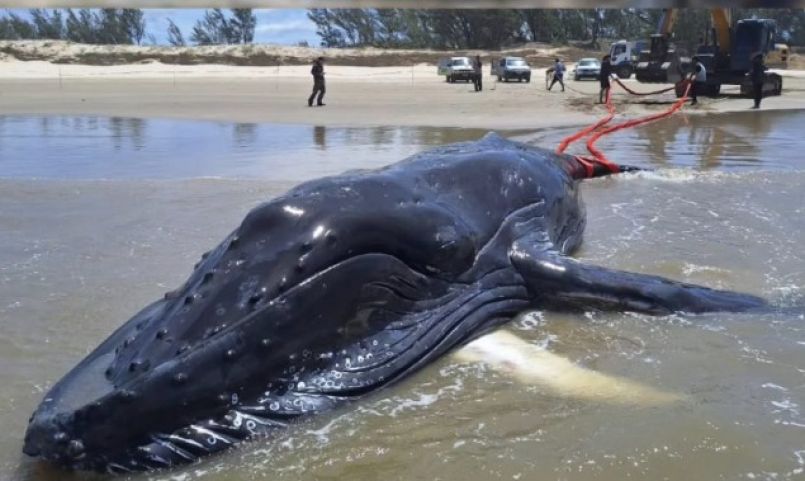 Os pesquisadores afirmam que esse é o 70º encalhe de jubarte no Brasil em 2025. Os dados são do Instituto Baleia Jubarte.